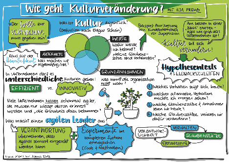 Um eine Unternehmenskultur zu verändern, muss ich erst einmal verstehen, in welcher Kultur ich mich befinde. Passt diese Kultur zu dem, was ich erreichen möchte? Können die Prinzipien des agilen Manifests in der aktuellen Kultur überleben? Und wenn nein, wie müsste ein optimales Business Culture Design aussehen?