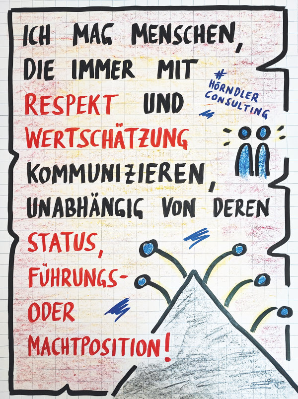 Unabhängig davon, in welcher Situation wir uns befinden. Ein respektvoller, wertschätzender und nicht verletzender Umgang mit dem Gegenüber ist immer eine wertvolle Währung. Es ist der Grundbaustein für eine positive zwischenmenschliche Beziehung. Jeder Mensch ist wichtig und verdient Respekt, egal in welcher Lage er sich befindet.