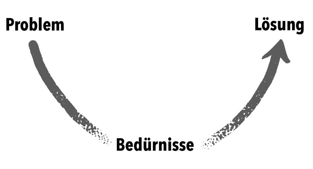 Das bedeutet, wir müssen eine Ebene tiefer gehen. Auf die Ebene der Bedürfnisse und Gefühle. Denn wenn es emotional wird, ist das ein Zeichen dafür, dass auf dieser Ebene auch das eigentliche Problem liegt.
