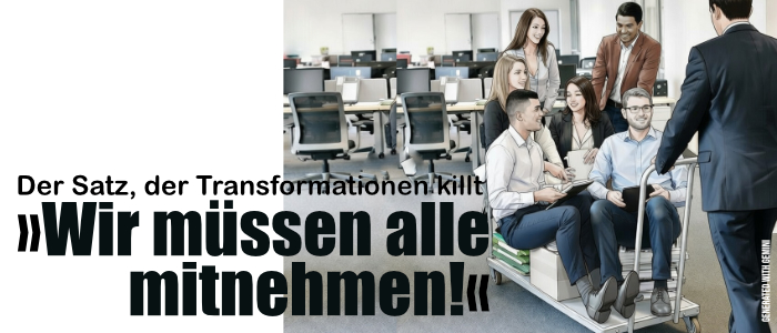 Wenn Transformationen scheitern, liegt es selten an fehlendem Wissen. Meist liegt es an einem Satz: „Wir müssen alle mitnehmen.“ Kaum eine Floskel klingt so vernünftig – und richtet so viel Schaden an.